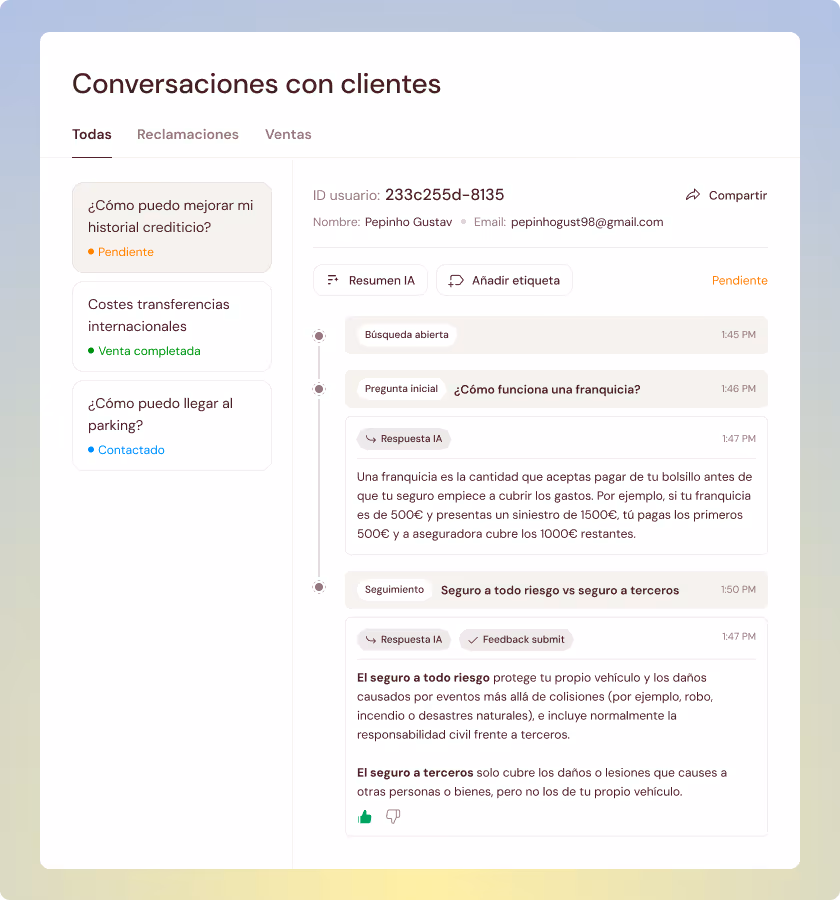 Solicita una demo con tu marca sin compromiso y descubre cómo van a sentirse tus clientes usando AI Findr.
