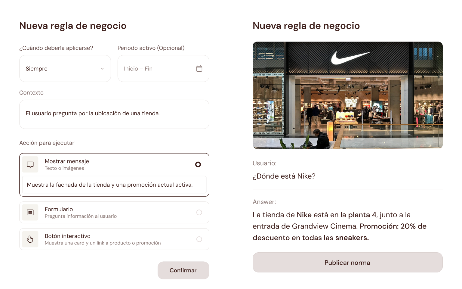 Personaliza AI Findr: define el tono de voz, aplica tu branding y establece reglas de negocio.
